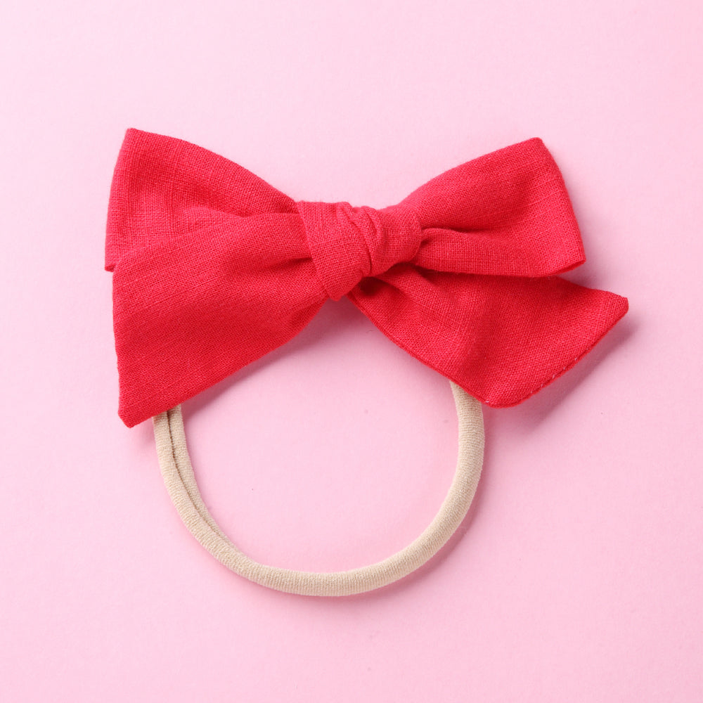 Cotton Linen Headband Bow | Red