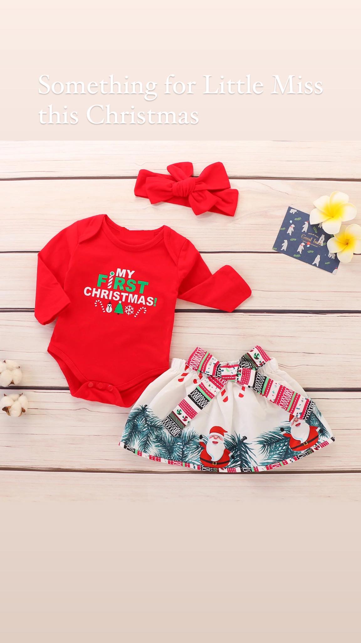 Dress up your Little Princess with a super cute Christmas Santa printed skirt with Red Romper.